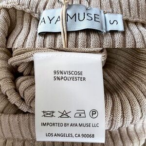 AYA MUSE Skirt Pisa Ribbed Knit Maxi Slit Metallic Stretchy Beige S NWT