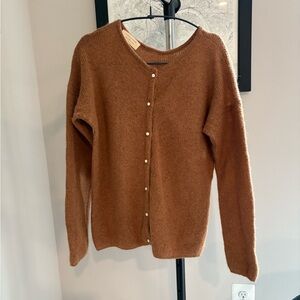 Cozy brown sweater by Sezane. Features a button-up front. Soft and stylish. There are sign of wear and pilling that can easily be removed with a sweater comb.