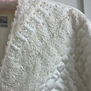 Vintage 1980’s Christian Dior Quilted Bed Jacket Robe with Lace collar and trim