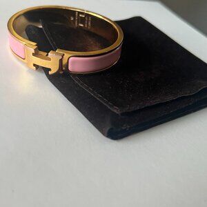 Authentic Hermès Clic H PM Bracelet Pink Enamel Gold Hardware