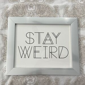 Silver frame with 'Stay Weird' text. Purchased at Urban Outfitters