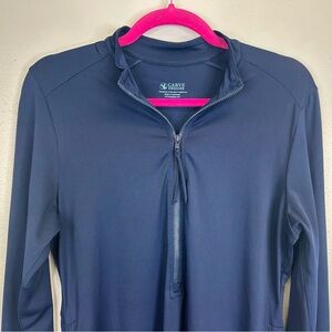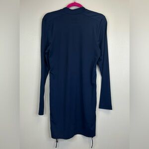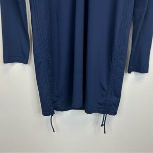 Carve Designs Women's Ruche Swim Top or Cover-Up Dress in navy blue. Zipper collar front closure. Chic long sleeve coverup. Ideal for beach or poolside. Features adjustable side ties. Womens M.