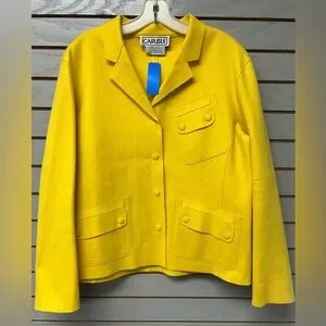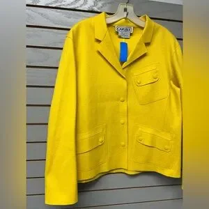 Elevate your style with this bold yellow blazer from Carlisle. Features buttoned pockets for a chic look.