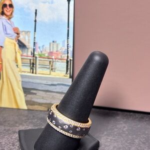 This stunning ring features a sophisticated blend of gold and black tones, adorned with sparkling crystal accents. Perfect for adding a touch of elegance to any outfit. NEW!!! This is a fair price. I will take offers but no low offers.