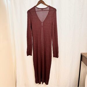ANTHROPOLOGIE | PILCRO POINTELLE SWEATER DUSTER LONG CARIDGAN IN BROWN MEDIUM
