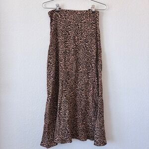 Reformation Leopard Print Midi Slip Skirt Tan Black Viscose Blend Size 2