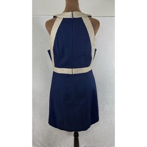 Lilly Pulitzer Eliana True Navy Braided Gold Dress Elegant Office Siren Fitted