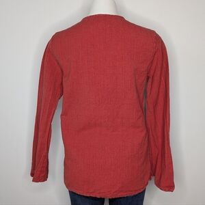 Flax Red/Orange Linen Cotton Blend Long Sleeve Top S. Has a washed out red/orange color. A few spots on the material look like brown lines, not easily visible (see photo)