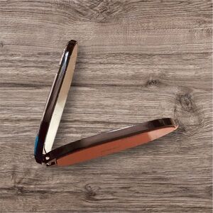 Dior Beauty phone stand, opens up into a double-sided mirror. It features a prominent CD logo in silver with a black background. It has adhesive on the back to stick to our cell phone or any other surface. You would like to place it. You could also leave the adhesive on and use as a purse mirror. Comes new in box.