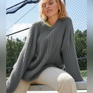 Cozy ribbed sweater. Soft fabric. Oversized. Perfect for layering.