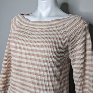 J. Crew cream pink striped cotton sweater S. Great condition.