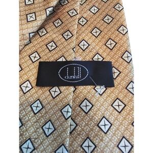 Dunhill Silk Tie Geometric Diamond Pattern Gold Men's Necktie Luxury