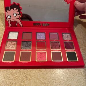 This bundle includes: Cherry Bombs 20 piece hydrogel lip masks in storage case, zip all the way around poka dotted wallet measuring 6 1/2 inches wide, 4 inches length and 3 1/2 in depth with tags. Glamlite Betty Boop 15 eye shadow colors new without tags and a Betty Boop beautiful bag charm! Everything is brand new!!