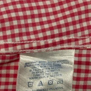 Lands' End Pink Gingham Button Down Shirt w/ 3/4 French Cuff Sleeve