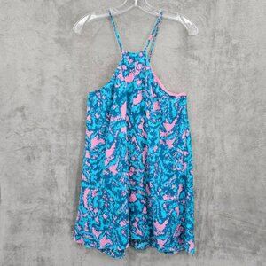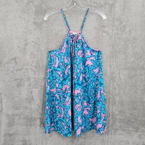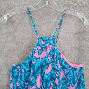 Izzy & Lola Marieta Dress M Blue Pink Tie Front Strappy Lined Boho Colorful New