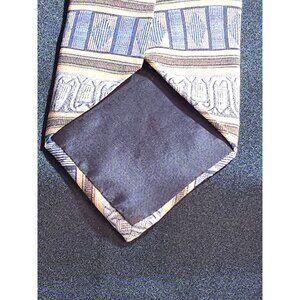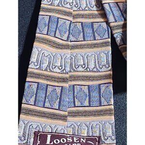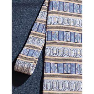 Elevate any ensemble with this exquisite vintage tie from Loosen Up by Gentry. Crafted from 100% silk, it showcases a sophisticated geometric pattern, blending blue and yellow tones. This tie adds a refined elegance to both formal and business settings, making it an impressive addition to any wardrobe.