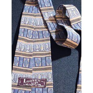 Vintage Loosen Up By Gentry 100% Silk Geometric Pattern Mens Necktie In Blue & Y