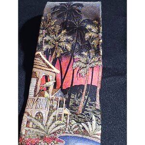 This Croft & Barrow necktie offers a vibrant tropical landscape design, showcasing palm trees and a serene setting. Its luxurious silk fabric and detailed artwork make it a stylish addition to any wardrobe. Enjoy a touch of island paradise wherever you go.