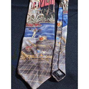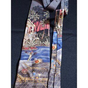 Vintage Colorful Croft & Barrow Tropical Landscape Necktie With Exotic Design