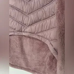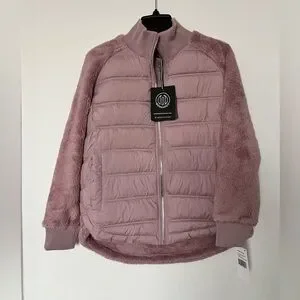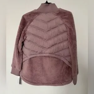 Plush high-pile-fleece sleeves enhance the exceptional warmth of a quilted puffer jacket that's insulated with recycled-polyester fill.