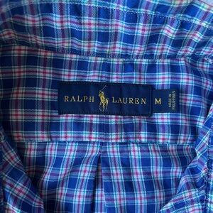 Ralph Lauren vintage men’s medium button-down shirt! Classic plaid design with red stripes. Perfect for casual outings! Lightweight & great for layering. 100% cotton