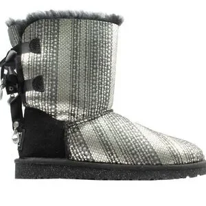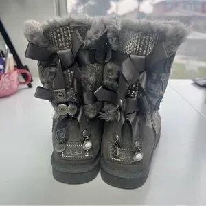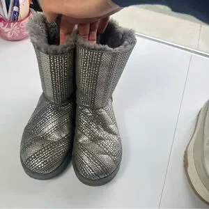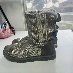 UGG Ugg Bailey Bow Bling Flat Boot Sparkly Gray Boots Size 6