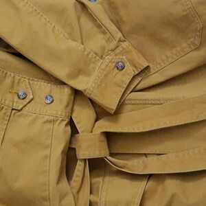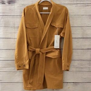 Descriptions and Features: BOYISH The Joaquin Kimono Jacket Wrap Dress In Golden Child OSFM XXS-XL. See measurements for best fit. Versatile as a jacket or dress. Kimono-inspired, wrap silhouette cut from heavyweight, non-stretch denim in a rich golden yellow wash. Front Patch Pockets. Long Sleeves with Button Cuff, Self-Tie Belt to cinch the waist. Inside Waist Drawstring for additional cinching.