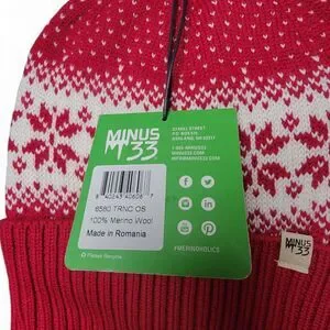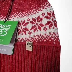 Minus33 Merino Wool Knit Beanie Red Snowflakes New Snow Gear Skiwear Classic