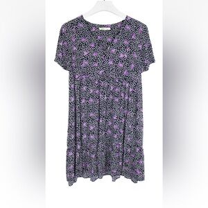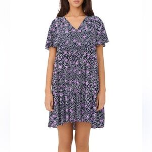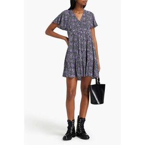 Maje Risee Floral Purple Oversized Flutter Sleeve Mini Dress Size FR 38 (US 6)