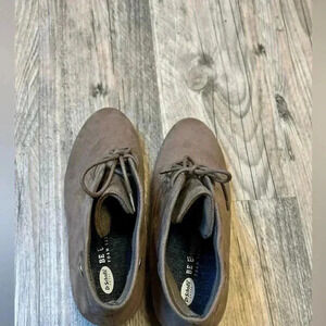 The women's Dr. Scholl's' Conquer wedge bootie will help you take on whatever the day throws at you. From the fabric upper to the Memory Foam footbed, you'll look fashionable and stay comfortable. Lace up closure Decorative button strap Soft fabric lining with a memory foam cushioned comfort footbed Foam midsole for added support Durable traction outsole 2 and 1/4 inch stacked wedge heel