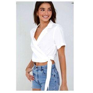 Bella Dahl Short Sleeve Wrap Shirt in White- XS,M,L