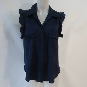 NWT Women Misa Los Angeles Navy Blue (Item- 126) Ruffled Sleeves Blouse Top M