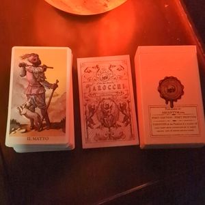 This classic 78 card tarot deck is beautifully and uniquely designed. The cards in the Major Arcana as well as the court cards are directly inspired by classic tarot decks with only refreshing twists. The decks that have served as inspiration are The Soprafino, The Mitelli, The Minchiate, The Neoclassico, and the Etteilla Tarot. The Minor Arcana is more loosely inspired by the classics as well, and there are many nods to other classics such as the RWS and the Tarot de Marseille. All of the artwork has been redrawn by Mr Friborg in order to achieve a sense of cohesiveness throughout the deck.