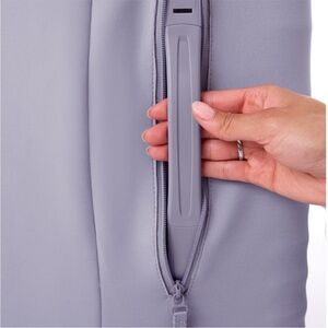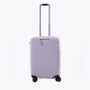 Stylish lavender travel bag by BEIS. Features durable wheels and a sleek design. Perfect for travel. helps protect against scuffs and scratches. openings for top and side handles. Gone for good on website