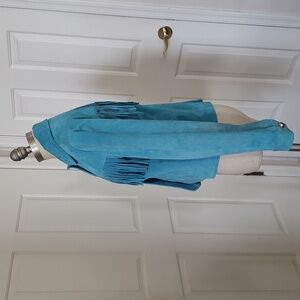 Vintage MARGARET GODFREY Turquoise Suede Western Jacket Cowgirl Fringe Rodeo