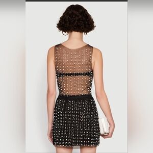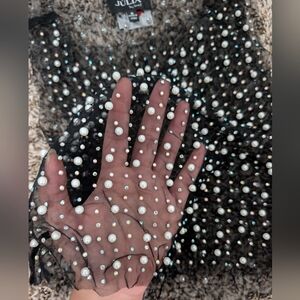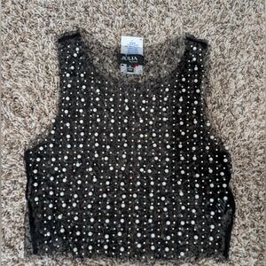 Elevate your style with this chic embellished sheer black crop top. Perfect for a night out, this top combines elegance with a modern twist.