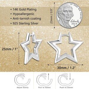 terling Silver Star Hoop Earrings: Package includes one pair of silver star earrings for women. The silver star jewelry symbolises hope, eternity and romance, and will add a touch of elegance to you.
