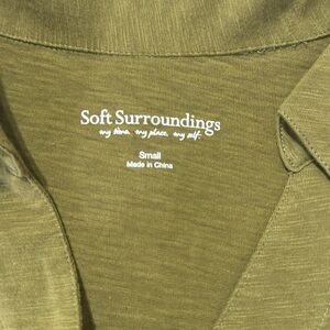 Soft Surroundings Danielle 3/4 Sleeve Earth tone Olive Green Button-Down Shirt