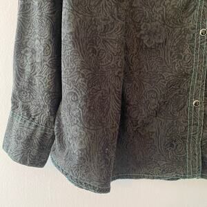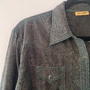 Wrangler Black Gray Paisley Print Pearl Snap Western Shirt Vintage Women size XL
