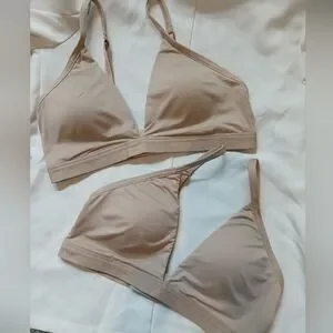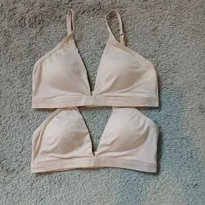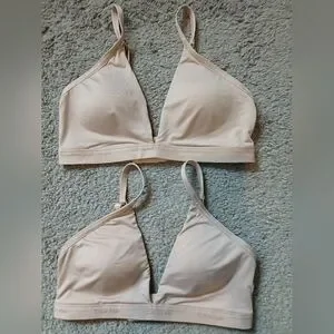 Calvin Klein Lot X 2 Soft Cup Lightly Lined Wireless Beige Bralette Set Sz Large