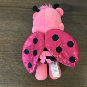Charming pink Care Bear with a vibrant rainbow belly. Ideal for cuddles and playtime.
