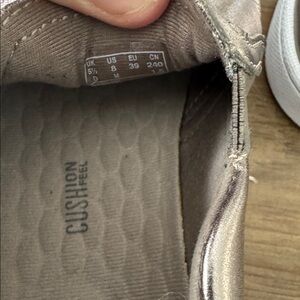 Chic Clarks slip-ons with a sleek metallic look. Ideal for everyday style. “Ultimate Comfort” insole. Perfect to dress up an every day outfit.