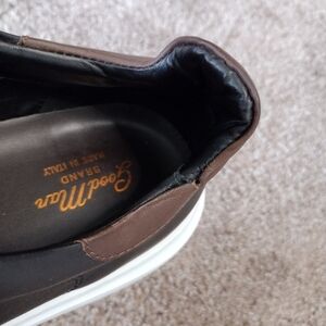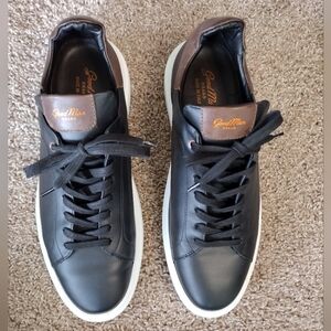 Good Man Brand Legend London Sneakers, size 11.5. Step out in style with these sleek black Italian leather shoes from Good Man Brand. Perfect condition other than a small cut on the left shoe pictures. please note flaw. Perfect for any occasion, these shoes offer both comfort and elegance. All questions welcome!