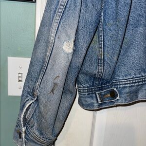 Definitely has some wear has some holes stains on the sleeve. Definitely check all the pictures of the condition. Other than that it’s in good shape for being vintage. It says it’s a men’s size 48. But I would say it’s an XL.