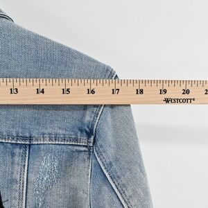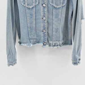 Tractr Womens Jean Jacket Size XL Pink Sequin Tongue Button Rolling Blue Stones