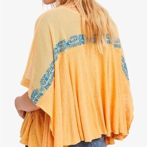 Free People Love Letter Embroidered Linen Blend Poncho Top Tangerine Sz L $128