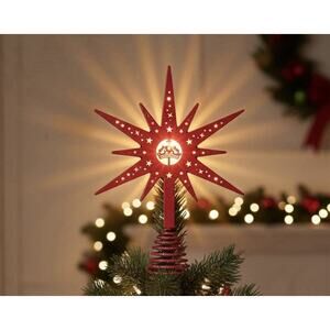 Pink Christmas Tree Topper 9" Wooden Red Bethlehem Treetop W/Out Battery *READ..