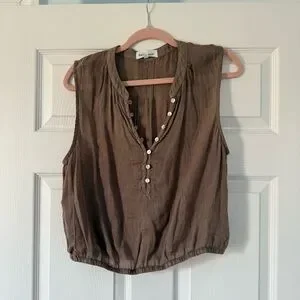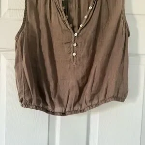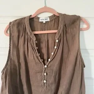 Bella Dahl Brown Sleeveless Blouse with Button Accents