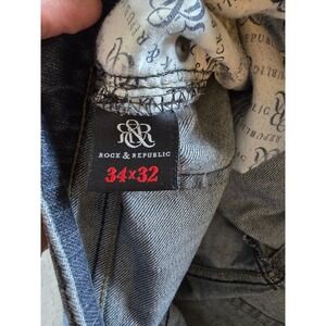 Rock & Republic Stinger Jeans Mens 34x32 Straight Denim Blue Western Cowboy