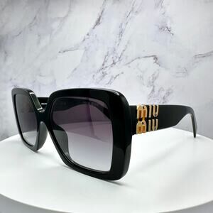 New MIU MIU Sunglasses Black Square Gold Full Rim 56mm MIU MIU